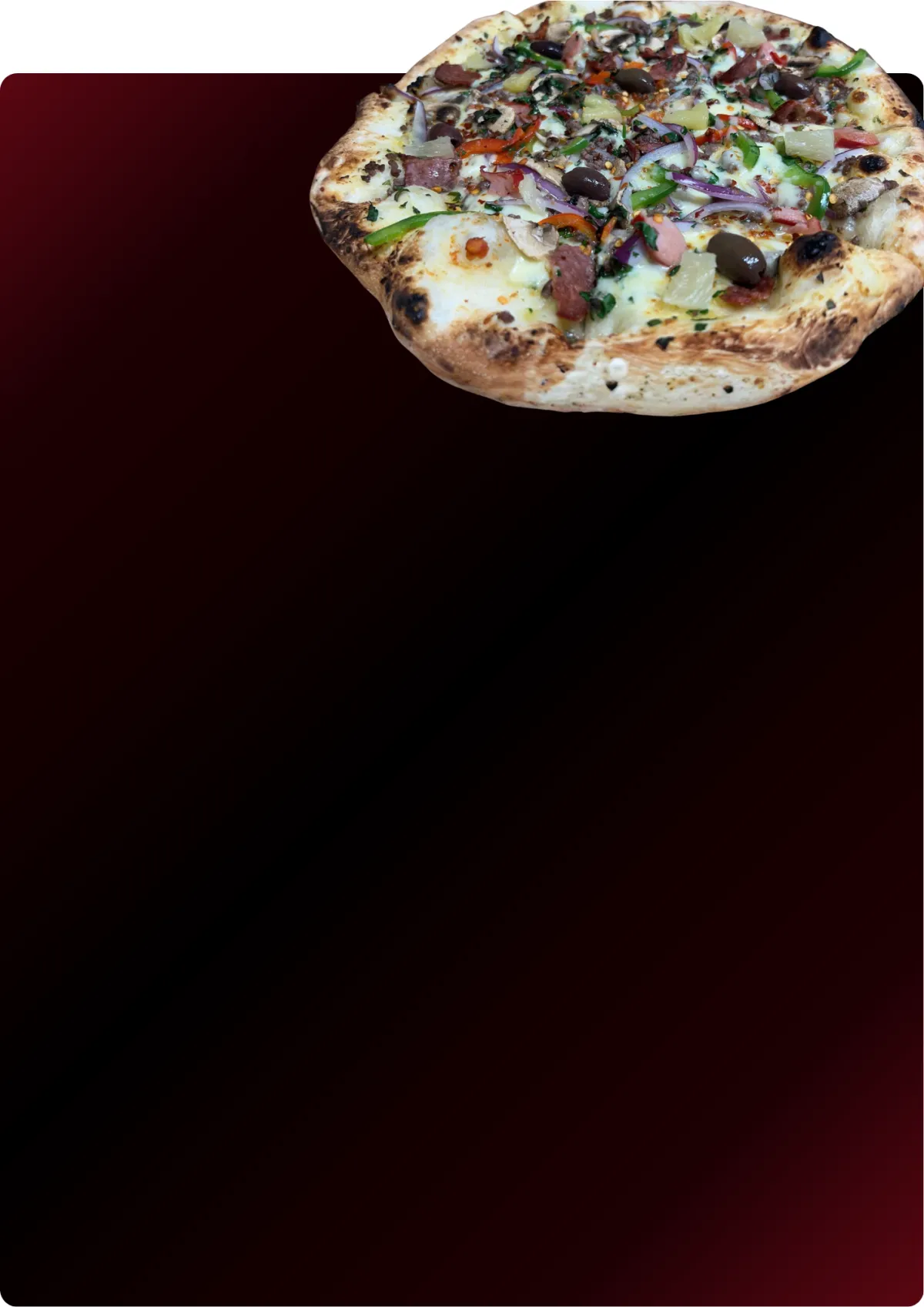 Mozzarella, Pepperoni, Bacon, Ground Beef, Onion, Mushrooms & Olives